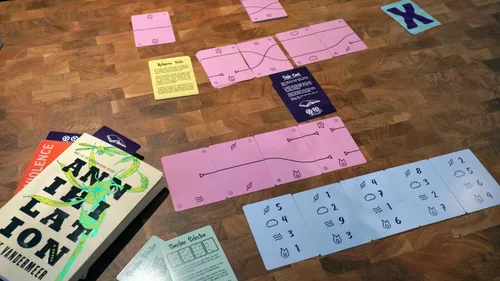 A worldbuilding game for 1-6 players about the story of a community over generations. Take turns moving factions around a central game board to add things to the world like factions, locations, issues, projects,characters, and glimpses of places outside. Fast forward everything a generation and do it all again.