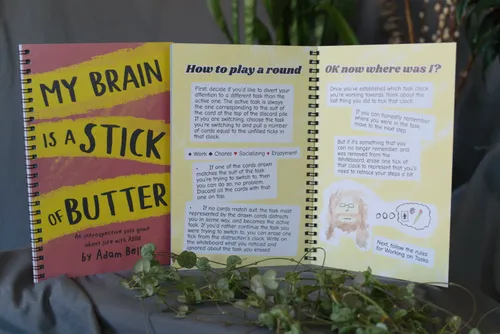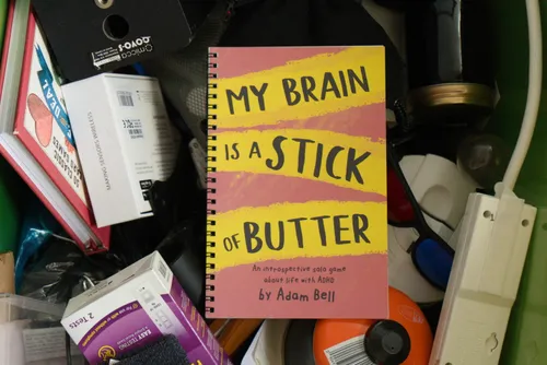 my brain is a stick of butter is meant to model some of the struggles I experience due to my ADHD. It was originally a digital only release, but the response I got to it from people who read and played it lead me to produce this nice physical edition. People who don’t have ADHD say it’s helped them understand their friends and loved ones more, and people who do have found it to be almost too relatable.